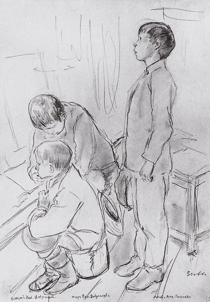 I was inspired by Boris Kustodiev’s 1900 pencil sketch originally titled, Дети. It’s in the public domain on wikiart.org. This study and sketch reminded me of snow.